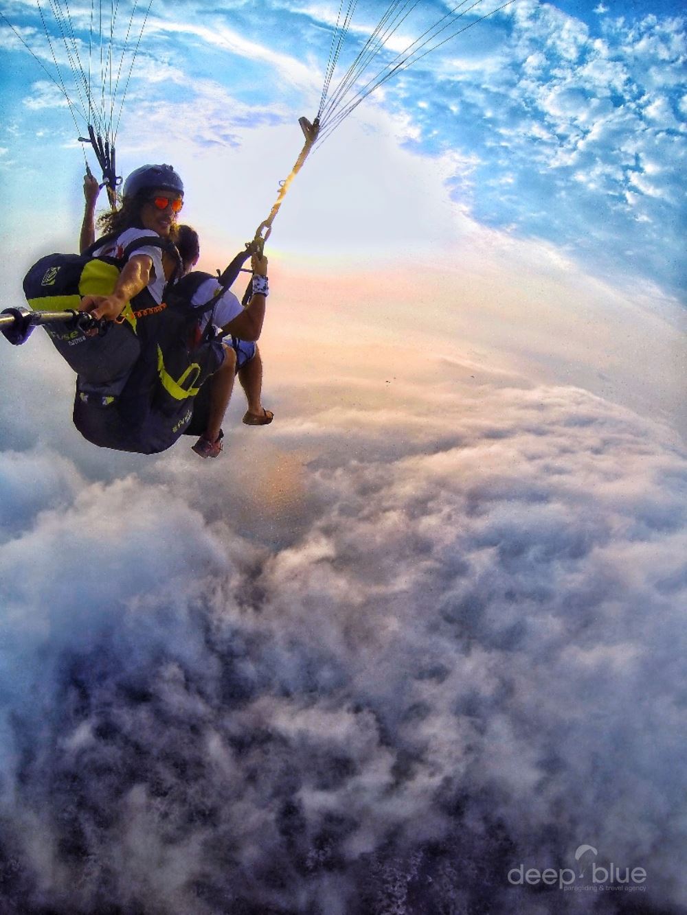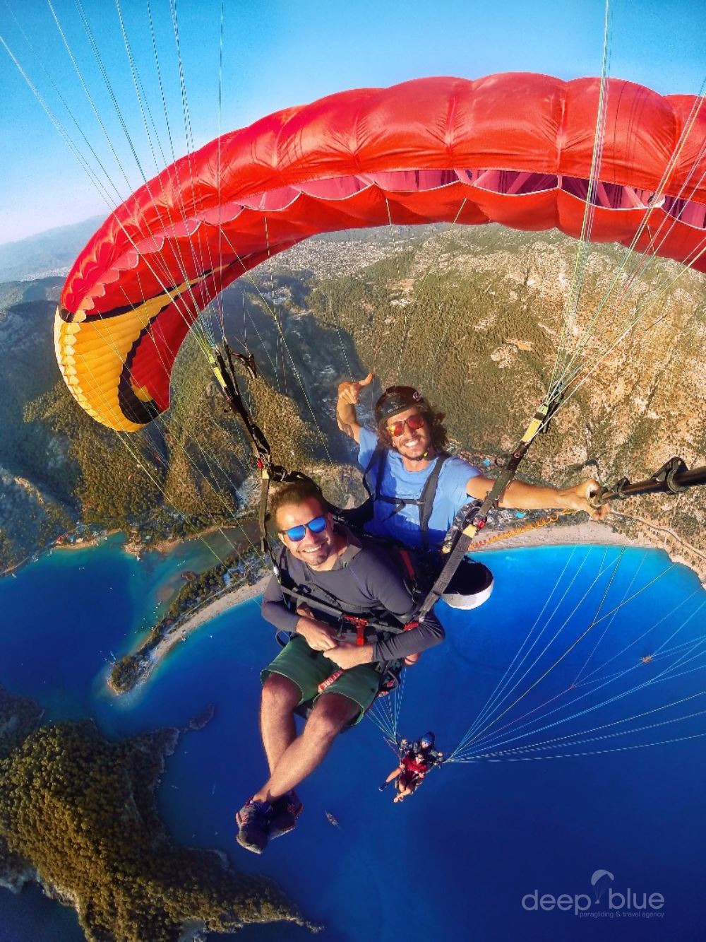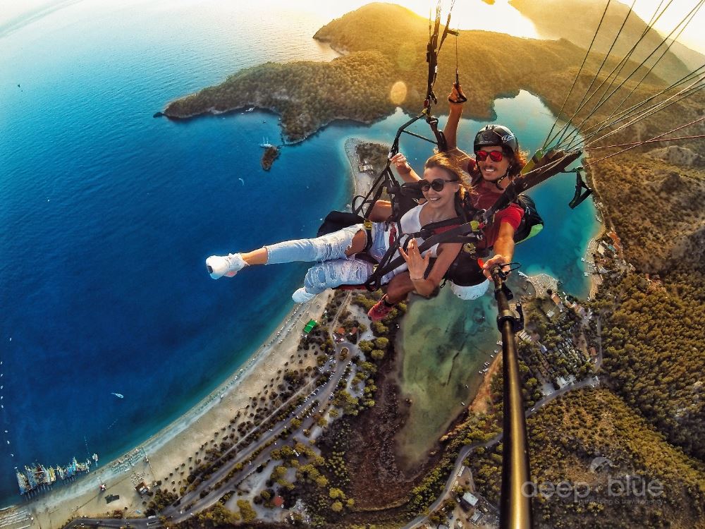 Paragliding is definitely the best thing to do in Oludeniz, and Oludeniz is definitely the best place on Earth to do it! Babadağ is considered to be a perfect design for paragliding. The height and location of the mountain give us the best wind, and the rest of nature gives us the best view possible from up above on Earth. Deepblue Paragliding offers you flights with master-pilots who takes the required tests and health checks each year. With such experience, you will have the best moves and the safest flight. Just to make you sure, paragliding for our guests is not a big deal. All you have to do is follow the instructions of your pilot when you jump- which is just taking a few steps down the hill when asked. Each flight takes between 20 and 30 minutes depending on the weather conditions. Our pilots may take you as high as 2000 metres, and you will be amazed by the view from that point.