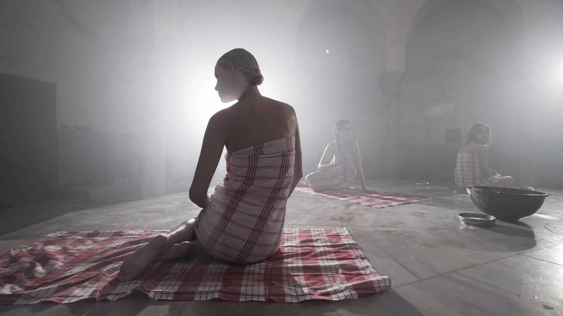 The Turkish bath begins with relaxation in a room that is heated by a continuous flow of hot, dry air, allowing the bather to perspire freely. Bathers can then move to an even warmer room before washing in cold water. After performing a full body scrub and receiving a massage, bathers finally retire to the cooling room for a period of relaxation.
